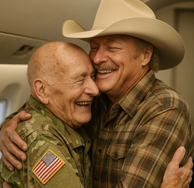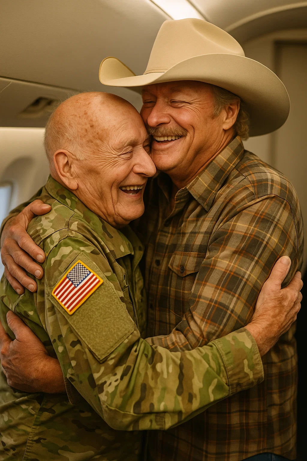 Alan Jackson, clad not in rhinestones but modesty, was boarding yet another flight amid the tireless rhythms of his touring life. As he navigated the narrow aisle toward his plush first-class berth, a silent sentinel in economy caught his discerning gaze—an elder, weather-worn veteran, marked not by medals but by quiet dignity, adorned only with a cap bearing the emblems of service. No grand gestures, no entourage—just one man among many, whose past bore the weight of a nation’s freedom.