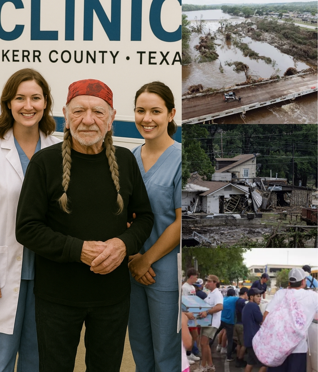 Kerrville, Texas — As historic floods wreak havoc across large parts of Texas, most emergency aid efforts focus on providing food and shelter to the displaced. However, in one of the hardest-hit areas of the state, a large white truck quietly rolled into a damaged neighborhood this morning—not filled with food or supplies, but with something perhaps even more essential: a fully equipped mobile medical clinic, personally funded by country music legend Willie Nelson.