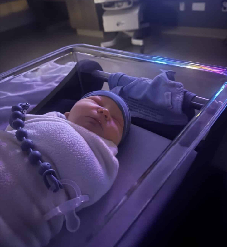 The pictures showed Jesse, Kristen, and their newborn son in the hospital just moments after his arrival.
