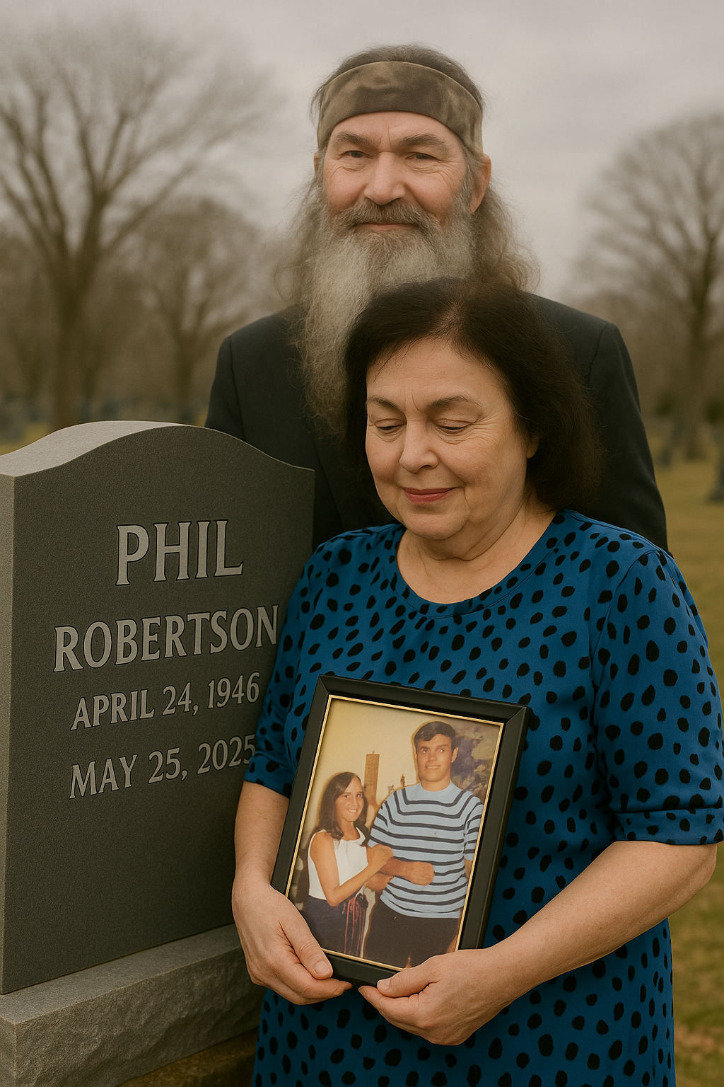 Kay Robertson stood at the edge of a quiet plot of land, the late afternoon sun casting a golden hush over the grass and headstones. There, beneath the gentle sway of the trees, lay the man who had shared her life — Phil Robertson. Her steps were slow, deliberate. Her gaze steady. There was no crowd. No ceremony. No spotlight. Just a woman, her memories, and the space where her husband now rested.