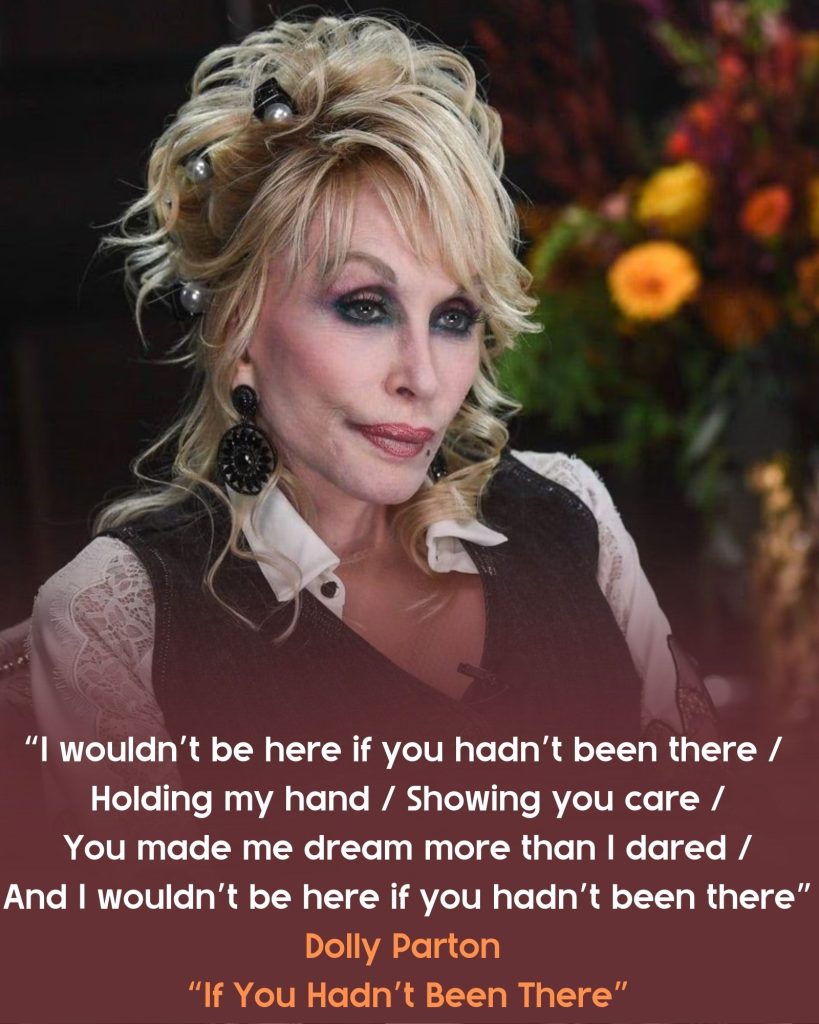 Musically, “If You Hadn’t Been There” is classic Dolly. The melody is simple yet haunting, carried by her unmistakable voice, which seems to hold both sorrow and joy in perfect balance. The arrangement leans into her country roots, with soft acoustic guitar, gentle strings, and a touch of piano that gives the song an intimate, almost hymn-like quality. It’s the kind of song that feels like it was meant to be played in a quiet room, where the lyrics can truly sink in.